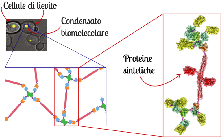 A causa dell’elevato numero di componenti del citoplasma, identificare i meccanismi che determinano la formazione e la dissoluzione dei condensati biomolecolari in condizioni fisiologiche è molto difficile. Per ovviare a questo problema, un gruppo di ricercatori della Sapienza, dell’Istituto Weizmann di Tel Aviv e delle Università di Oxford e Vienna hanno ingegnerizzato geneticamente delle cellule di lievito al fine di produrre proteine in grado di formare condensati biomolecolari con proprietà chimico-fisiche controllabili.