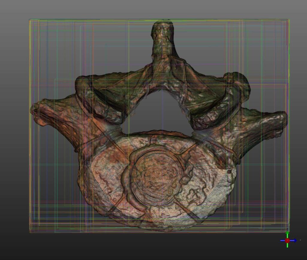 «Per la definizione tridimensionale delle caratteristiche morfologiche e morfometriche della vertebra di Galileo, è stato effettuato, mediante scanner a luce strutturata – già in dotazione presso il Dipartimento dei Beni Culturali – un rilievo 3D ad altissima densità di punti e a risoluzione micrometrica. La vertebra, utilizzando un piatto rotante sincronizzato via software con lo scanner, è stata rilevata da diverse prospettive in modo da ottenere un rilievo completo e continuo al di là della complessità morfologica del reperto dovuta alla presenza di sottosquadri, zone d’ombra e particolari traslucidi (come ad esempio il sigillo). In totale – hanno detto il professore Giuseppe Salemi e la dottoressa Emanuela Faresin autori dello studio e della riproduzione 3D – sono state effettuate 70 scansioni per un totale di circa 10 milioni di punti. Nella fase di elaborazione dei dati le operazioni che si sono susseguite definendo la pipeline di post processing sono state: filtraggio dei dati per la rimozione dei punti outliers; l’allineamento delle scansioni in un unico e comune sistema di riferimento; il passaggio da nuvola di punti a mesh ovvero un reticolo di poligoni interconnessi la cui area descrive la superficie dell’oggetto; verifica ed editing della bontà del dato; esportazione del modello ad altissima risoluzione per la successiva fase di stampa 3D. Il modello 3D della vertebra di Galileo risulta quindi essere veicolo di informazioni morfologiche e morfometriche fondamentali per la riproduzione tangibile della stessa. È scheletro e struttura sui quali sviluppare il prototipo».