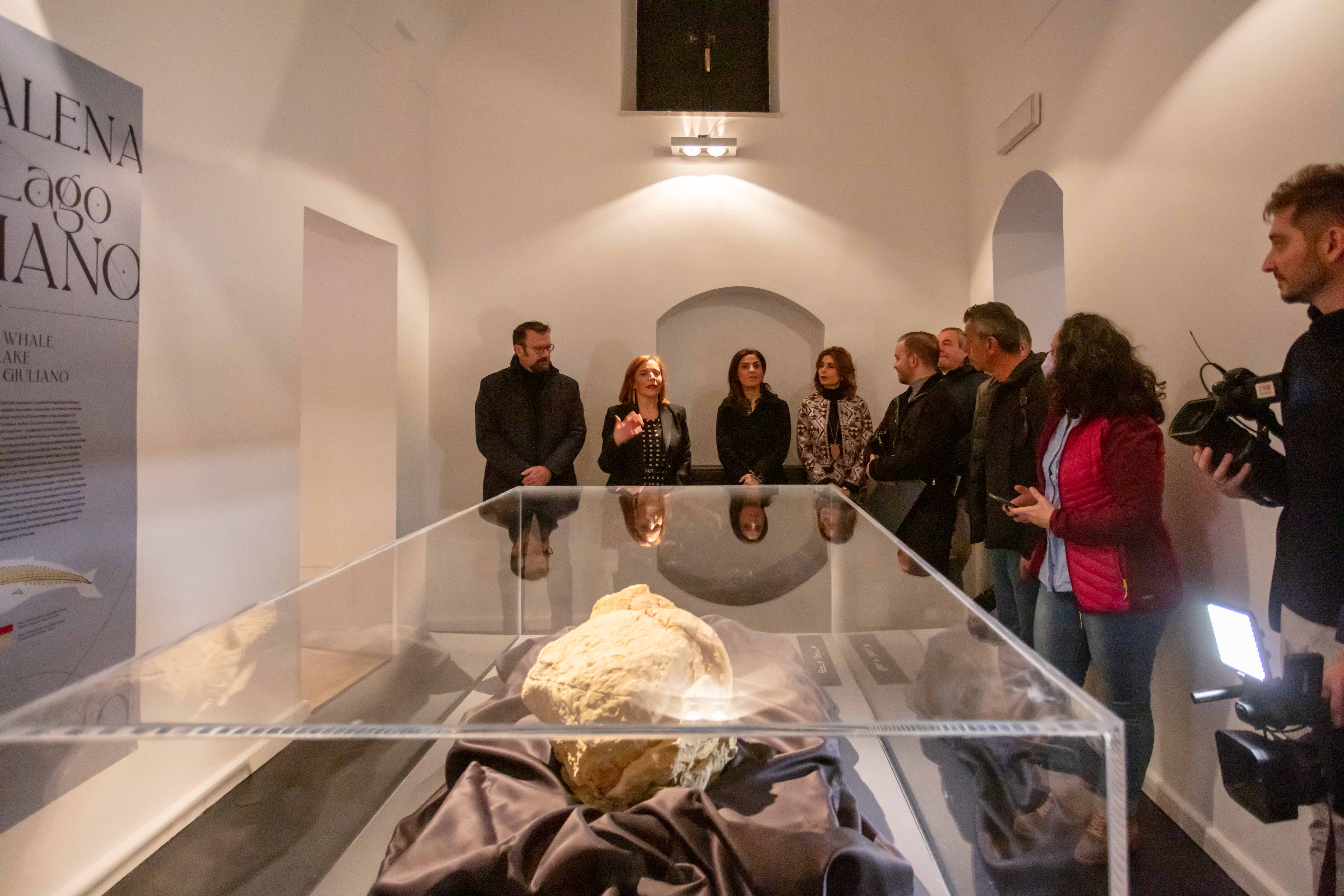 È stato inaugurato oggi nel Museo Archeologico nazionale “Domenico Ridola” il nuovo allestimento “Giuliana degli Abissi”, a cura di Annamaria Mauro e Laura D’Esposito, dedicato al fossile della Balena Giuliana, scoperto nel 2006 sulle sponde del Lago di San Giuliano, a 8 km da Matera. All’inaugurazione hanno preso parte la Direttrice del Museo nazionale di Matera, arch. Annamaria Mauro, il Direttore generale Musei, prof. Massimo Osanna, il sindaco di Matera, Domenico Bennardi.