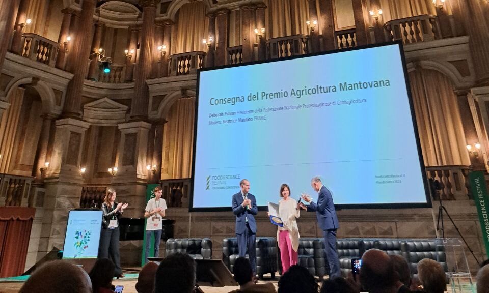Tra i momenti in scaletta, la consegna del Premio “Agricoltura Mantovana” a Deborah Piovan, Presidente della Federazione Nazionale Proteoleginose di Confagricoltura, presentata da Beatrice Mautino (FRAME-Divagazioni scientifiche) che sul palco, proprio con l’occasione dell’avvio della sperimentazione delle TEA in Italia, ha ripercorso gli intrecci sviluppati in questi otto anni di Festival sul tema tra agricoltori, scienziati e divulgatori, che insieme hanno contribuito, e continueranno a farlo, a costruire un dialogo positivo e costruttivo attorno a questo e altri temi di interesse e attualità.